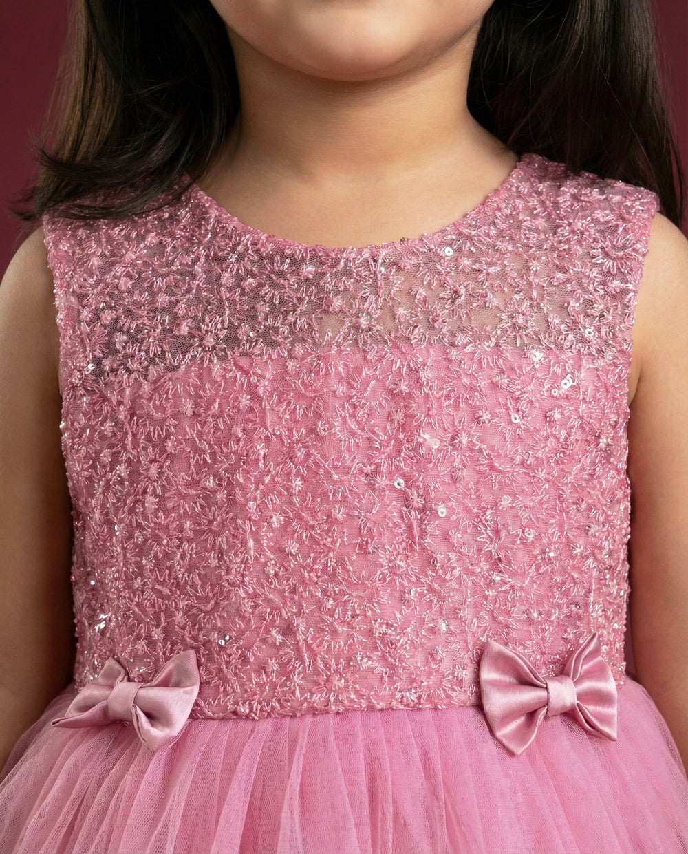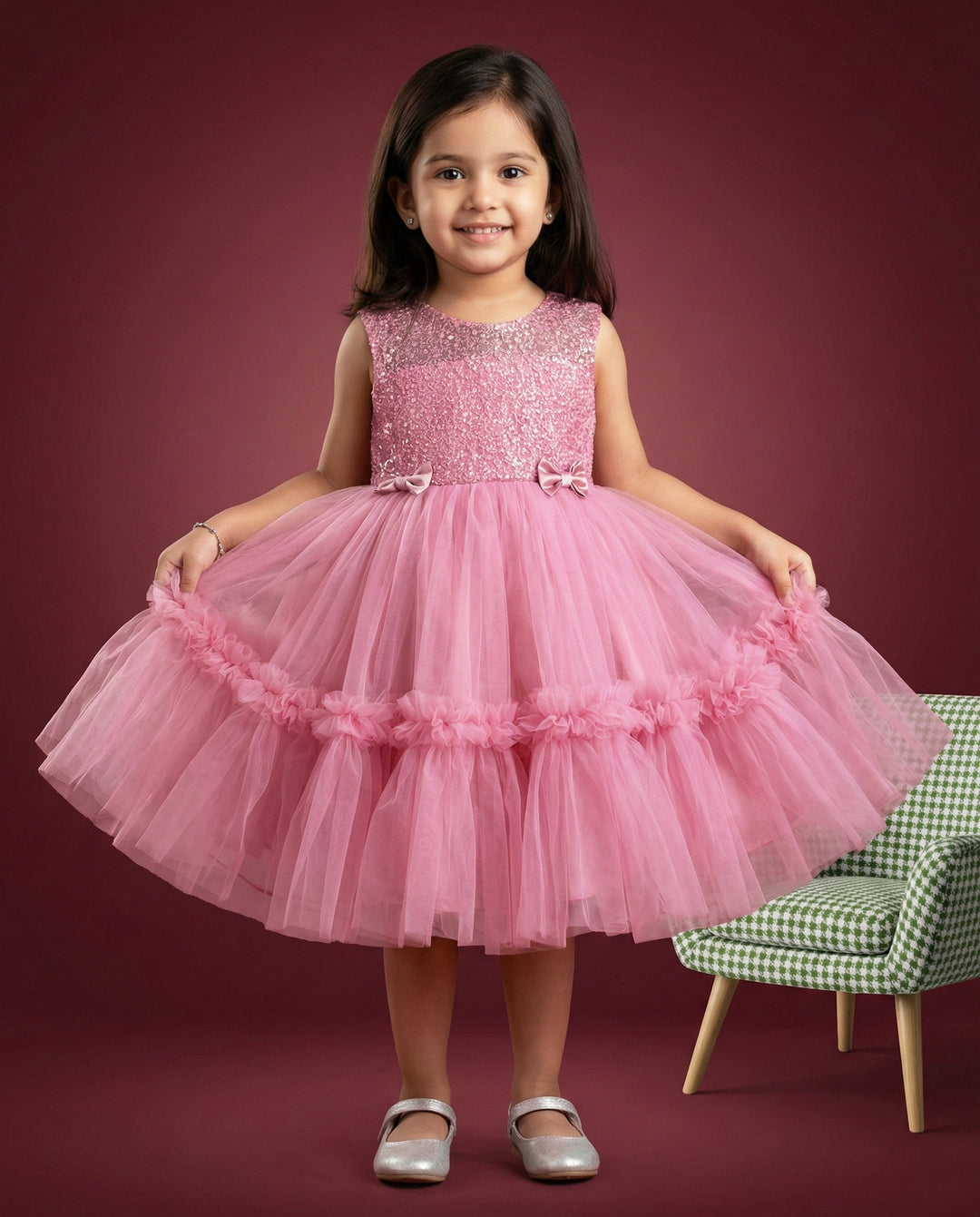 Dust Pink Frock For Kids, Perfect Outfit For Birthday Parties