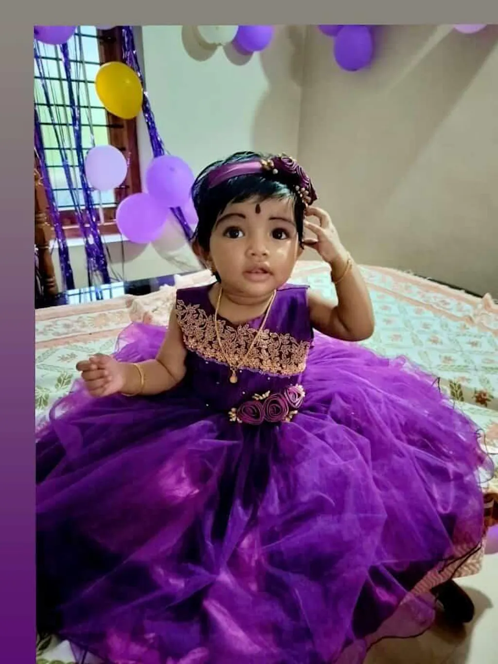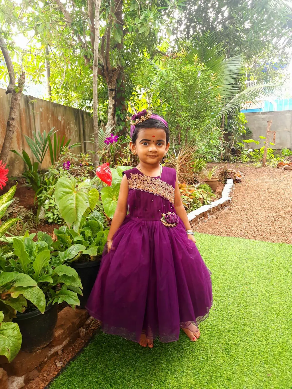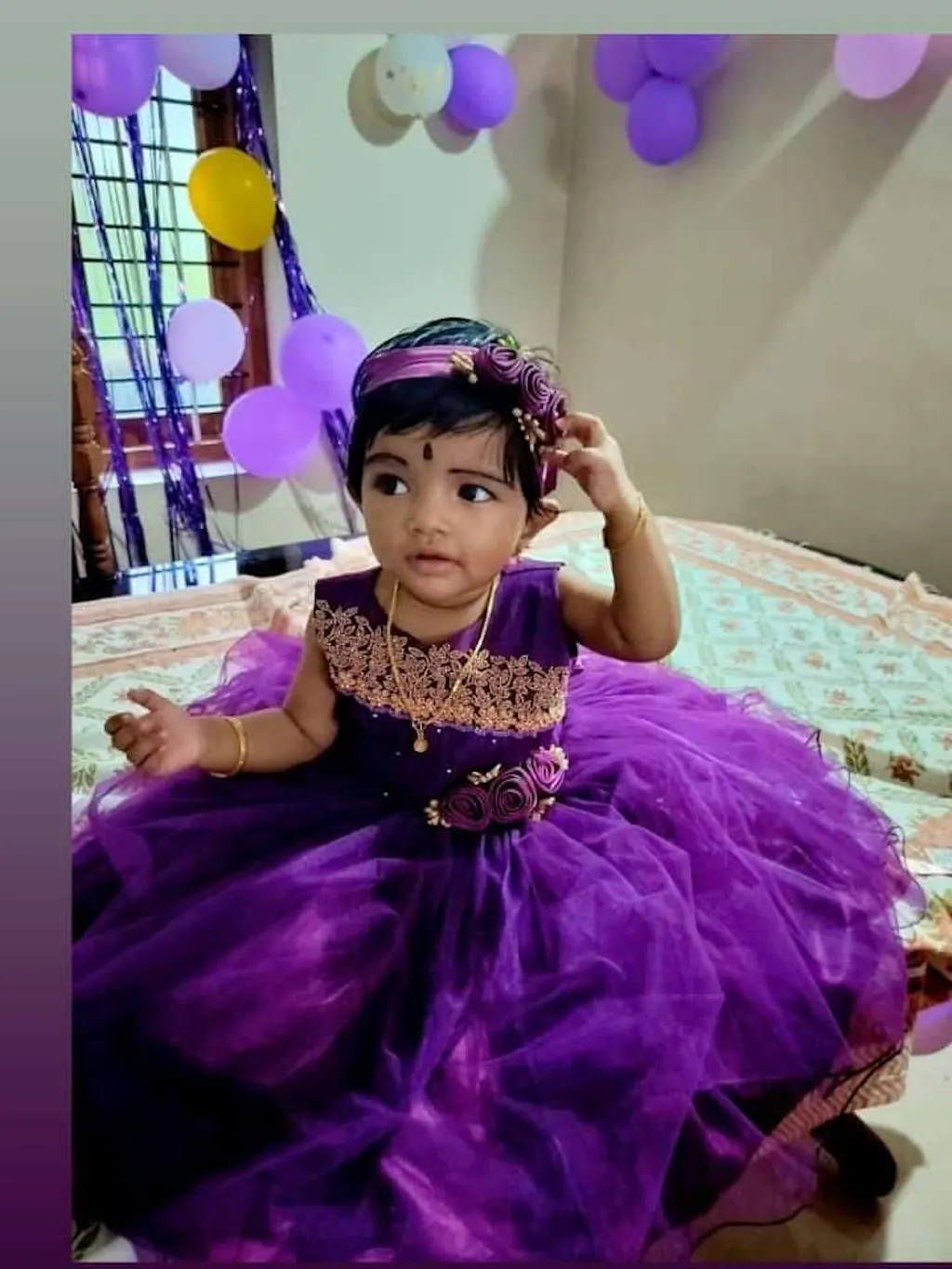 Purple Pleated Handwork Frock